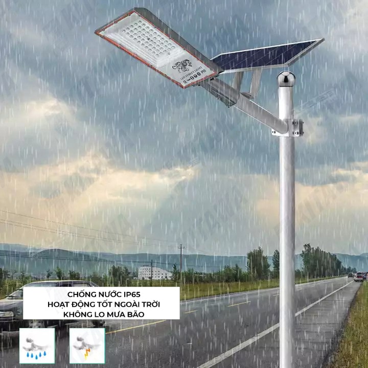 Đèn Năng Lượng Mặt Trời 200W KITAWA được trang bị chuẩn IP65 có khả năng chống bụi và chống nước vượt trội để bạn yên tâm lắp đặt ngoài trời và sử dụng trong mọi điều kiện thời tiết