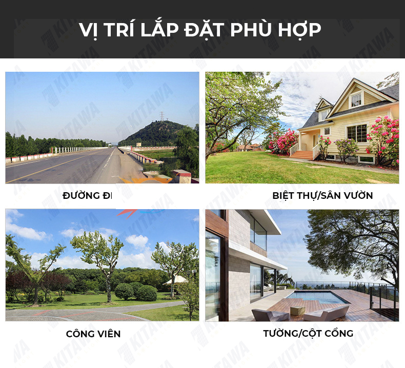 Kitawa - Đơn vị chuyên cung cấp các thiết bị đèn năng lượng mặt trời và thi công tấm pin năng lượng uy tín hàng đầu Việt Nam. Cam kết đem đến cho người dân Việt những sản phẩm giá trị thiết thực, tiết kiệm chi phí và bảo vệ môi trường. Đơn vị đã đạt được chứng nhận ISO 9001;2015 trong lĩnh vực kinh doanh, thi công đèn năng lượng mặt trời và hệ thống điện năng lượng mặt trời.