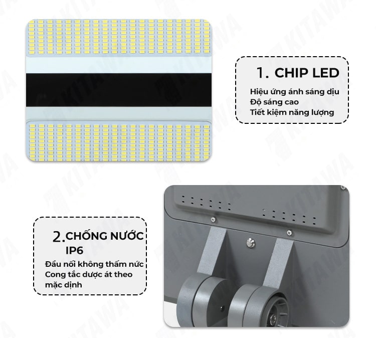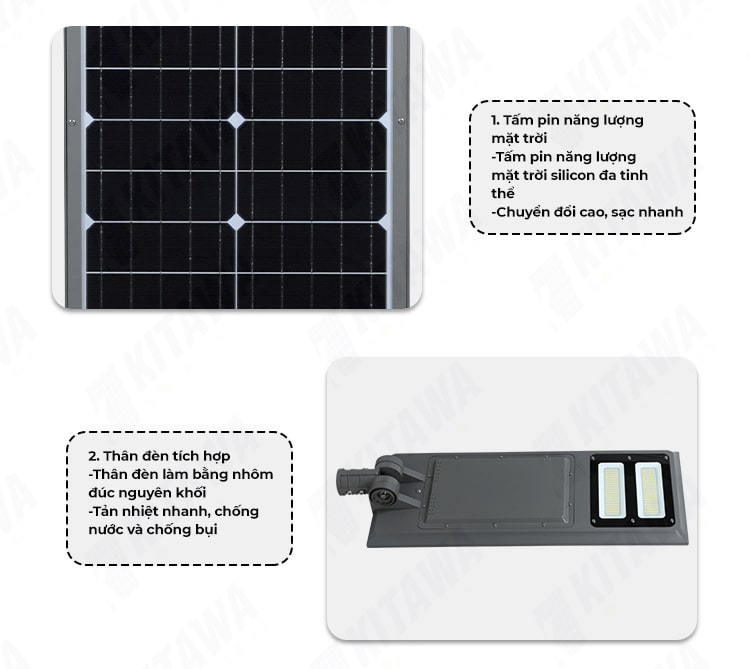 Kitawa - Đơn vị chuyên cung cấp các thiết bị đèn năng lượng mặt trời và thi công tấm pin năng lượng uy tín hàng đầu Việt Nam. Cam kết đem đến cho người dân Việt những sản phẩm giá trị thiết thực, tiết kiệm chi phí và bảo vệ môi trường. Đơn vị đã đạt được chứng nhận ISO 9001;2015 trong lĩnh vực kinh doanh, thi công đèn năng lượng mặt trời và hệ thống điện năng lượng mặt trời.