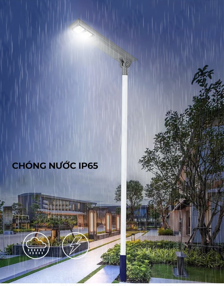 Đèn Năng Lượng Mặt Trời KITAWA được trang bị chuẩn IP65 có khả năng chống bụi và chống nước vượt trội để bạn yên tâm lắp đặt ngoài trời và sử dụng trong mọi điều kiện thời tiết
