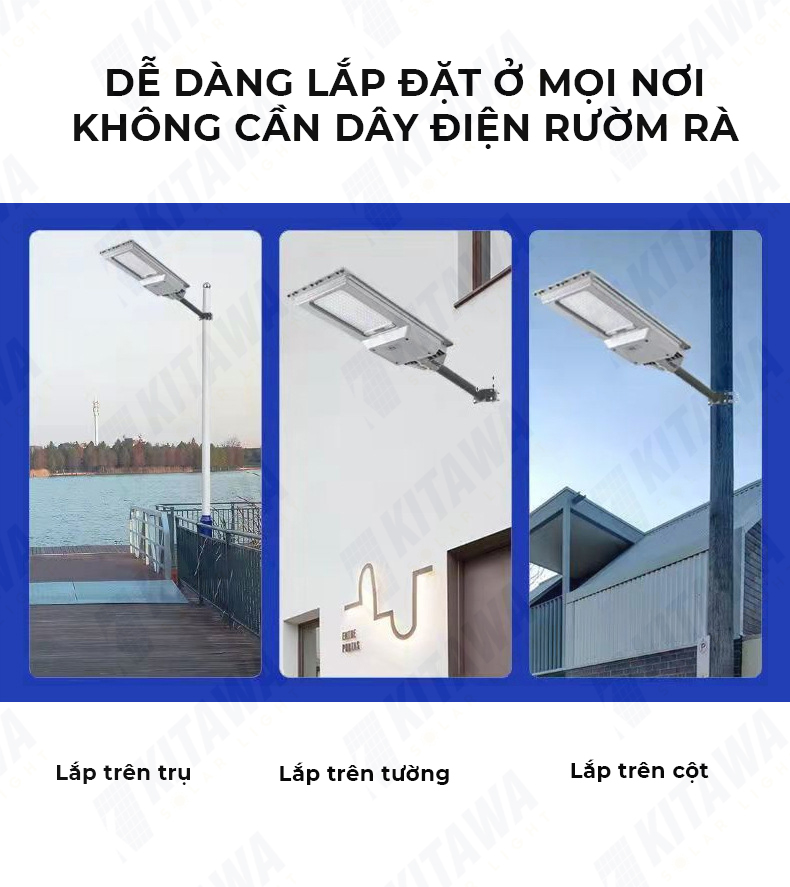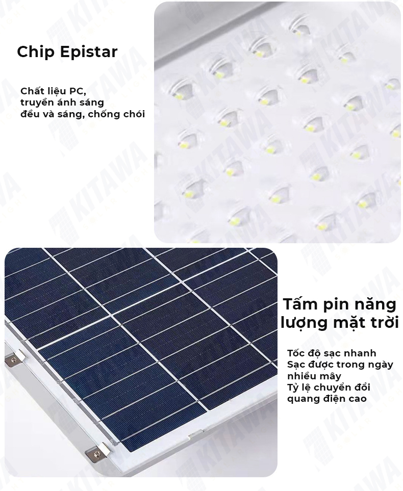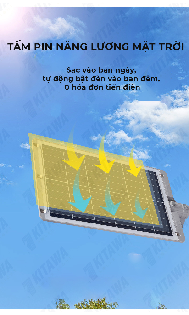 Kitawa - Đơn vị chuyên cung cấp các thiết bị đèn năng lượng mặt trời và thi công tấm pin năng lượng uy tín hàng đầu Việt Nam. Cam kết đem đến cho người dân Việt những sản phẩm giá trị thiết thực, tiết kiệm chi phí và bảo vệ môi trường. Đơn vị đã đạt được chứng nhận ISO 9001;2015 trong lĩnh vực kinh doanh, thi công đèn năng lượng mặt trời và hệ thống điện năng lượng mặt trời.