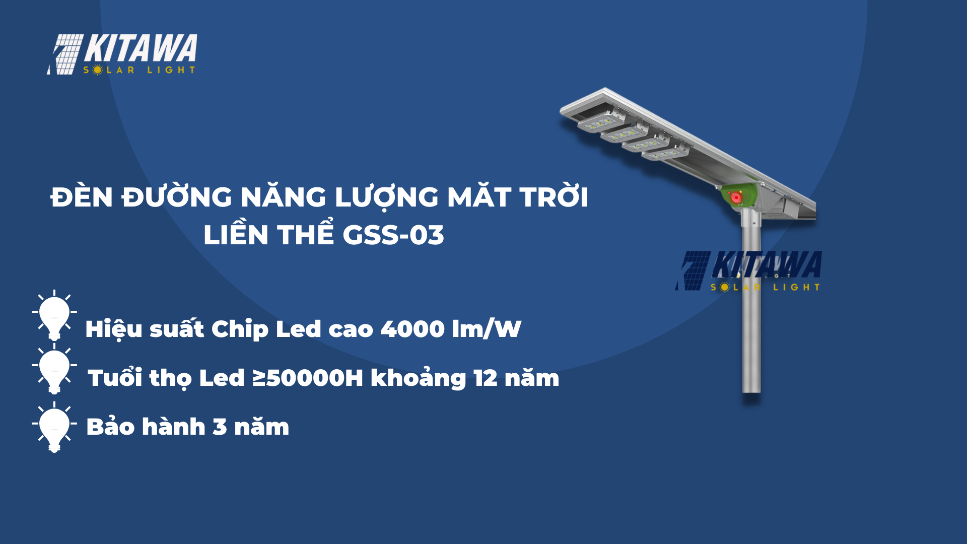 GSS-03 là mẫu đèn được thiết kế bao gồm tấm năng lượng, đèn năng lượng mặt trời và các linh kiện khác được tích hợp thành 1 thể thống nhất, cực kỳ dễ dàng cho việc vận chuyển và lắp đặt.