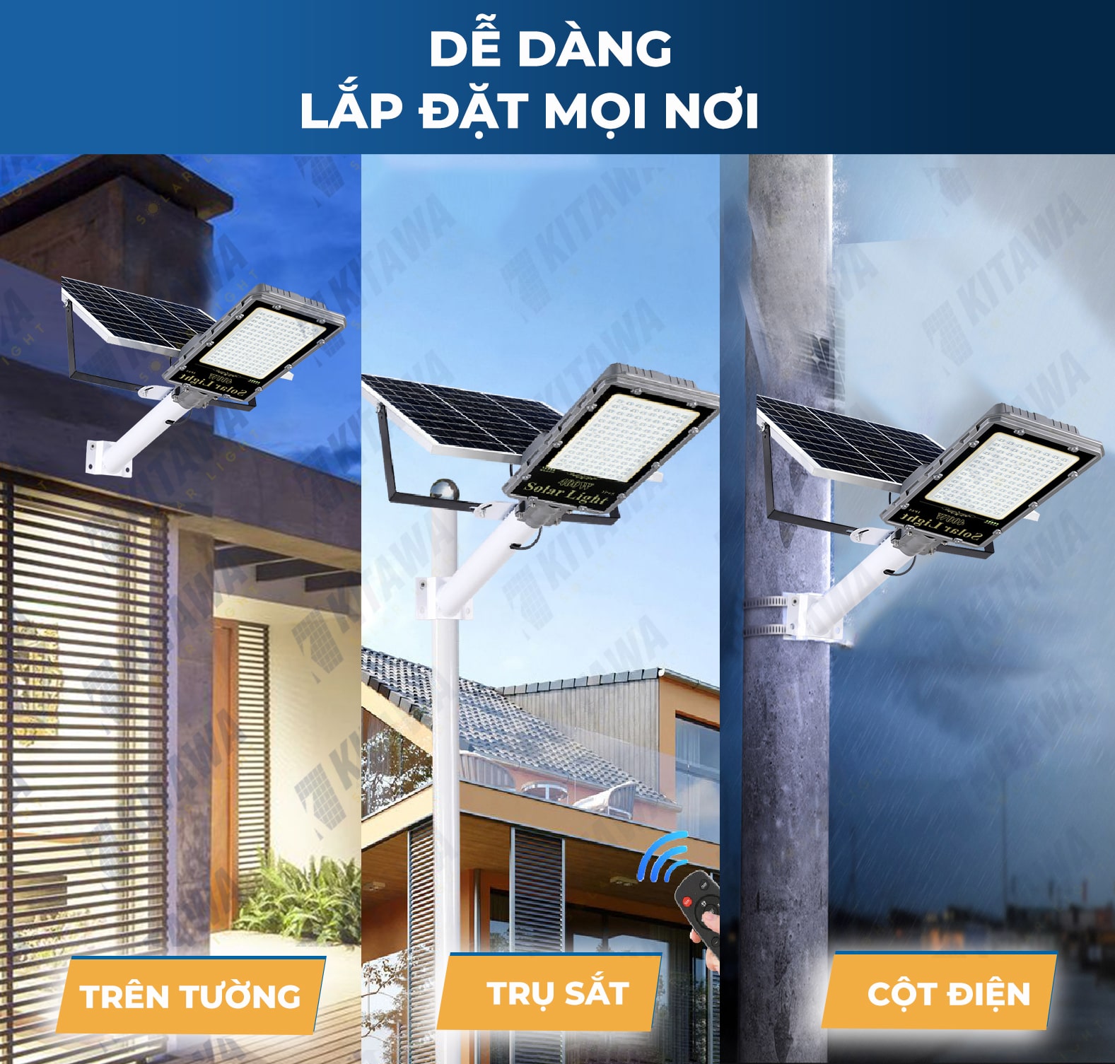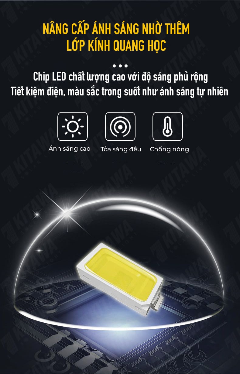 Kitawa - Đơn vị chuyên cung cấp các thiết bị đèn năng lượng mặt trời và thi công tấm pin năng lượng uy tín hàng đầu Việt Nam. Cam kết đem đến cho người dân Việt những sản phẩm giá trị thiết thực, tiết kiệm chi phí và bảo vệ môi trường. Đơn vị đã đạt được chứng nhận ISO 9001;2015 trong lĩnh vực kinh doanh, thi công đèn năng lượng mặt trời và hệ thống điện năng lượng mặt trời.