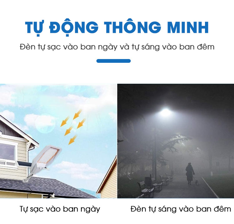3. Tự động bật/tắt khi trời tối: Chế độ đèn tự động bật sáng khi trời tối và tự động tắt khi trời sáng. Không phụ thuộc vào điện - Cúp điện đột xuất - Vẫn không lo trời tối - Đảm bảo an toàn cho gia đình bạn.
