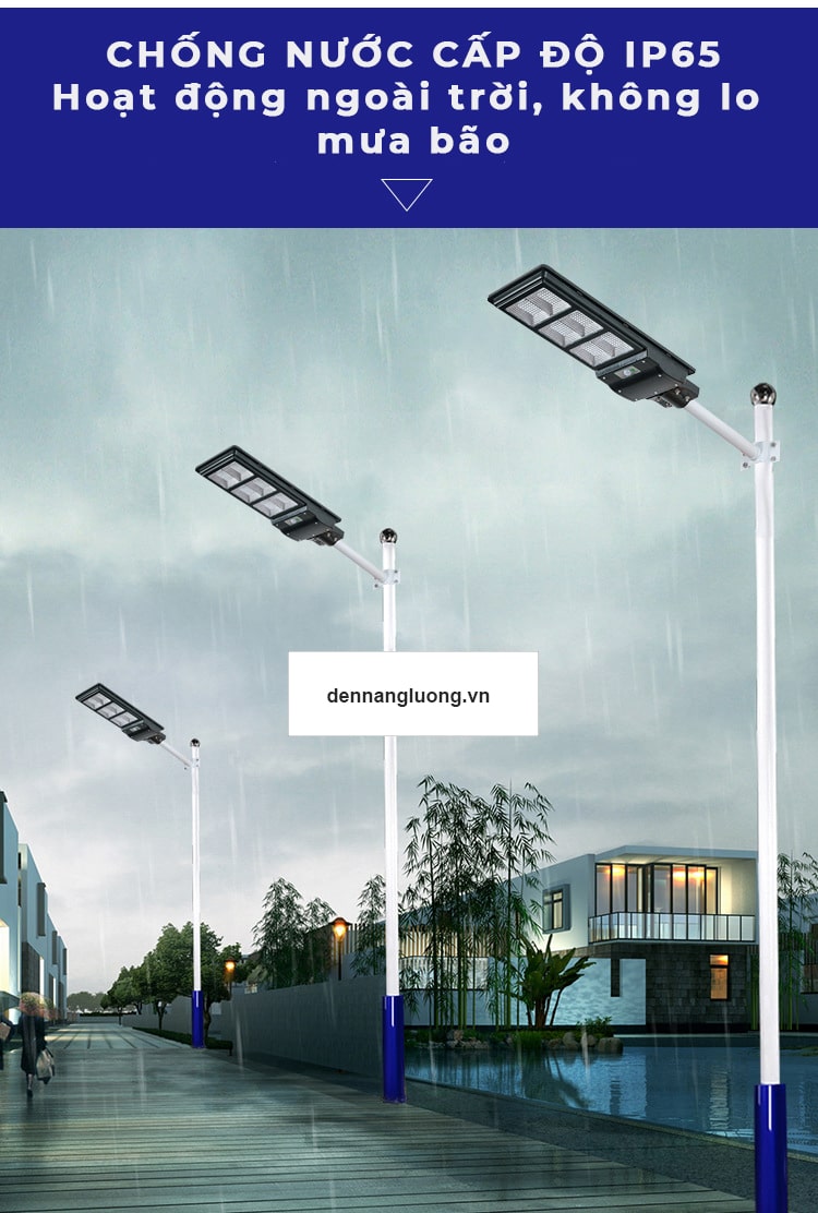 Đèn Đường Năng Lượng Mặt Trời LT490 được trang bị chuẩn IP65 có khả năng chống bụi và chống nước vượt trội để bạn yên tâm lắp đặt ngoài trời và sử dụng trong mọi điều kiện thời tiết