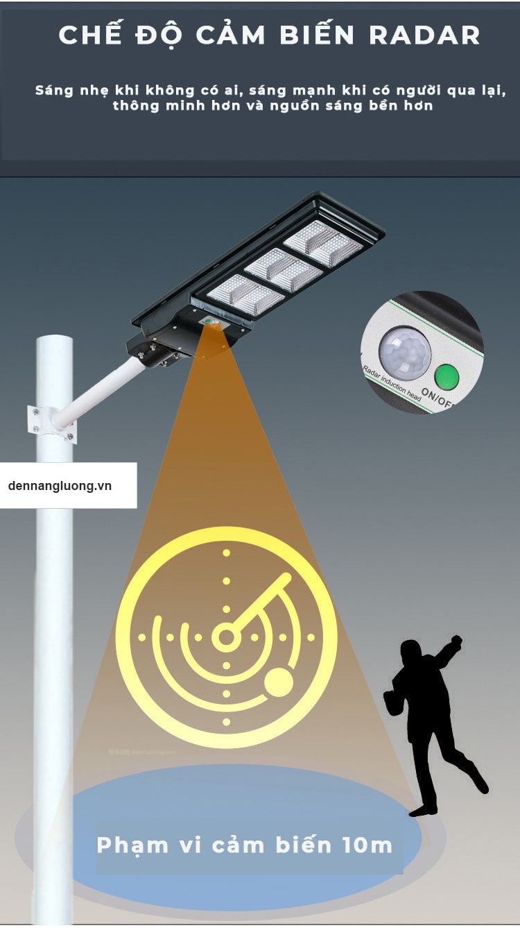 2. Chế độ cảm biến : Đèn sáng mạnh khi có người đi qua, đèn mờ khi không có người