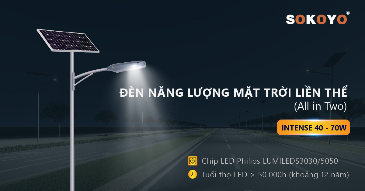 Đèn năng lượng mặt trời liền thể SOKOYO INTENSE 60W là một trong những mẫu đèn năng lượng mặt trời rời thể có công suất nhỏ - 60W. Tuy nhiên độ sáng của nó lên đến 10200LM nên các chủ đầu tư xây dựng, chủ quản dự án có thể lựa chọn để lắp đặt cho công trình của mình.