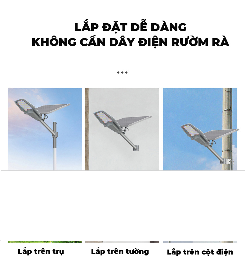 4. Không cần kéo dây điện rườm rà: Tăng tính thẩm mỹ, không dây điện lòng thòng, an toàn, không lo đứt dây mỗi mùa mưa gió.