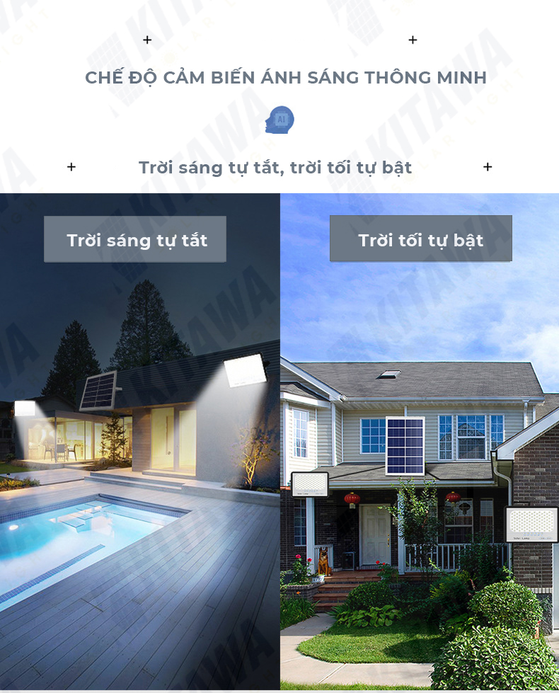 - Tự động sáng khi trời tối, tự động tắt khi trời sáng