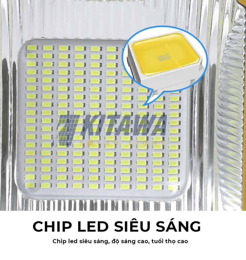 Đèn cũng được trang bị Chip Led chất lượng. Với chip LED SMD giúp tuổi thọ cao hơn so với các loại Led thông thường khác và giữ được mức độ đều màu cao hơn. Tuổi thọ LED là hơn 50.000 giờ (tương đương 12 năm sử dụng). Ngoài ra đèn thiết kế mỗi chíp Led sẽ có một thấu kính khuếch đại gắng kèm giúp phân bố ánh sáng được đồng đều hơn.